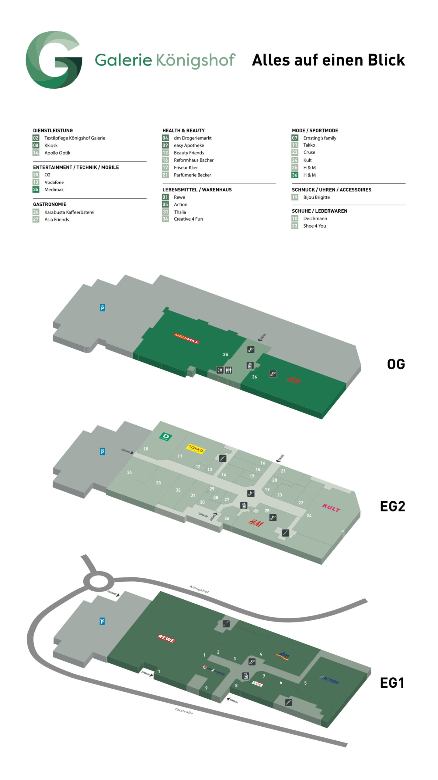 Informieren Sie sich auf unserer Übersicht zu den Geschäften in der Galerie Königshof über den jeweiligen Standort. Für weitere Fragen stehen wir Ihnen sehr gerne persönlich zur Verfügung. Nutzen Sie gerne unser Kontaktformular!